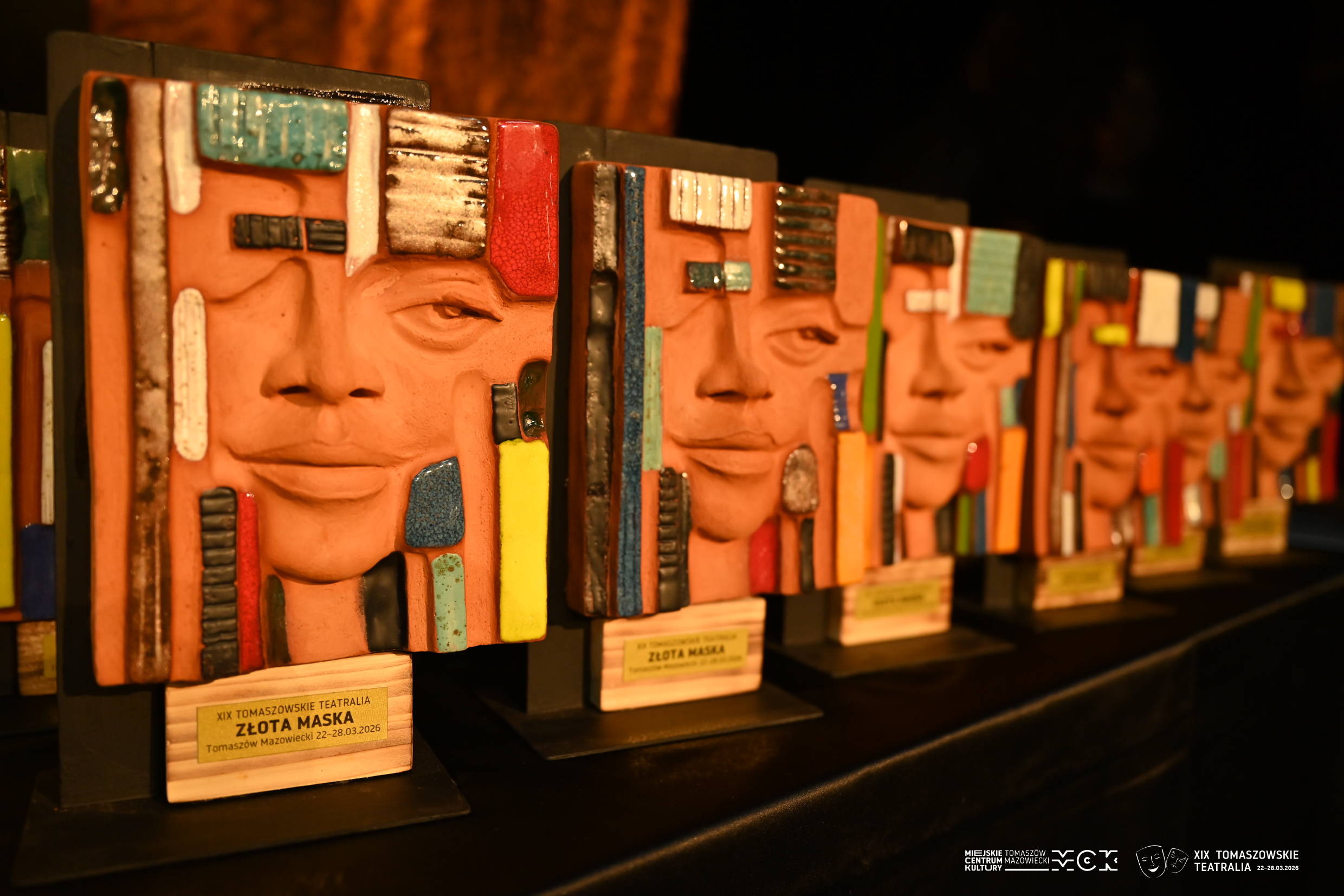 Nagrody w formie masek teatralnych wykonała oraz zaprojektowała Bożena Gajda z pracowni Ceramicznej Miejskiego Centrum Kultury w Tomaszowie Mazowieckim